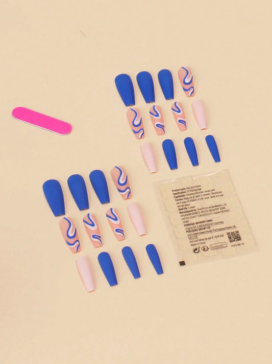 White & Blue Waves Nails